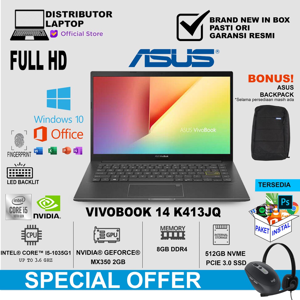Jual LAPTOP ASUS Vivobook K413FA-EK301T Core I3-10110U/8GB